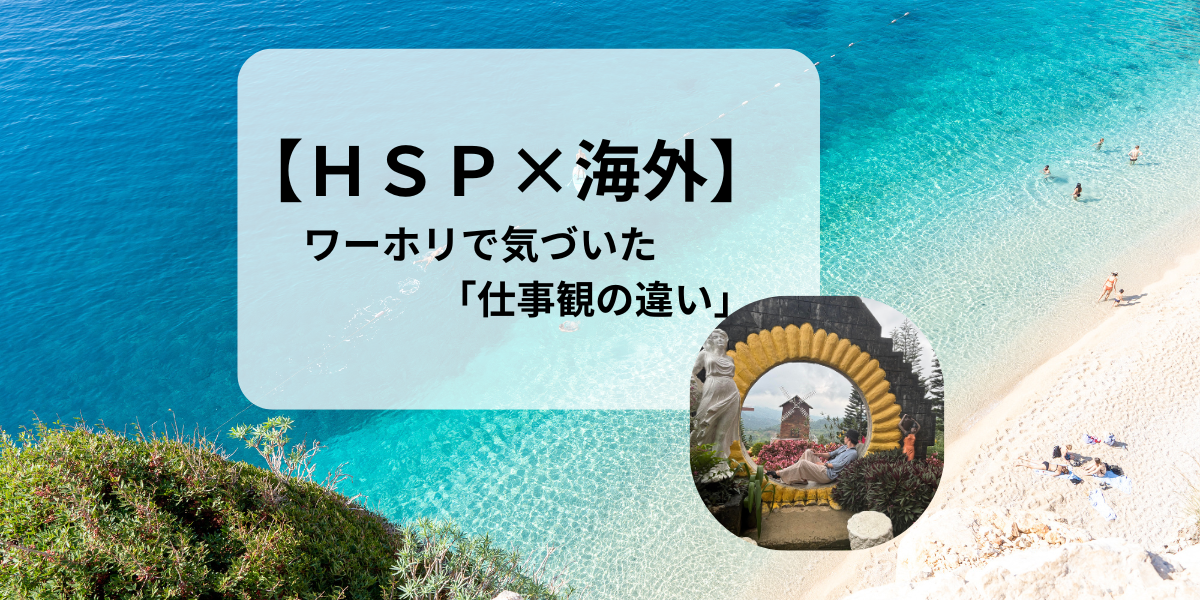 当サイトの人気記事Popular Post 【HSP×福祉職】失敗を引きずってしまうあなたへ ― 心理と対処法 88 views 【HSP】繊細さんにおすすめの本3選|HSP社会福祉士が実際に救われた一冊たち 42 views 【HSP×福祉職】HSPは福祉職に向いている?向いていない?現場経験から考える 37 views 【HSP×海外】HSPだけどワーホリに来てみた。1ヶ月半で感じたリアルな壁と変化 36 views 【HSP×福祉職】HSP社会福祉士が体験した、虐待対応で心が限界に達した日 21 views 【HSP×海外】ワーホリ半年で感じたこと|オーストラリア生活のリアル 19 views 【HSP社会福祉士】児童自立支援施設で、野球が子どもたちを支えていた話 16 views 【HSP】人と会った後の回復ルーティン|疲れを引きずらない過ごし方 15 views 新着記事New Post 【HSP×海外】職場のノリが合わない…ワーホリで感じた仕事観の違いと対処法 2026.03.21 HSP・繊細さん 【HSP×海外】ワーホリ中に限界を感じたときの回復法|海外生活で疲れたあなたへ 2026.03.17 HSP・繊細さん 【HSP×海外】HSPはワーホリに向いてる?実際に来て感じたメリット・デメリット 2026.03.14 HSP・繊細さん HSP・繊細さん ことばの学び 海外・留学・ワーホリ 福祉のリアル たくやHSP社会福祉士ProfileHSS型HSPの社会福祉士・たくやです。 福祉職を経て、現在海外へ挑戦中。日本語教師に向けた勉強も開始。日々の気づきや学びをHSPの視点から綴っています。プロフィールを読むXInstagramContact